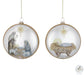 Assortment of biblical themed ornaments. Assortment includes the Holy family manger scene and baby Jesus in the manger. All assortments have a cream background, gold on the back, with gold glitter along the edges. Raised gold star. Gold cap and loop for hanging. Glass. Decal. Hand painted. Hand blown. Raised elements.