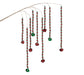 Spray with nine strands of red and green beads with a jingle bell at the top of each strand. There are three long strains, three medium strands, and three short strands. All strands end with a large size bell. Alternating in color.