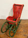 Charming vintage woven Christmas sleigh with red basket-style seating and green painted metal runners. Perfect for filling with ornaments, greenery, candy canes, or small gifts. Makes an adorable centerpiece, shelf decoration, or photo prop for the holidays.