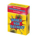 The cards are housed in a box with a bright, eye-catching yellow comic book look with a bold red comic book burst that accents the blue-lettered title.